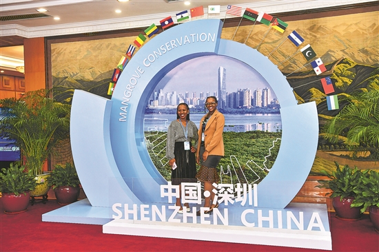 11月6日,兩位嘉賓在會(huì)場(chǎng)外合影留念。當(dāng)日,國(guó)際紅樹(shù)林中心成立協(xié)定在深圳正式簽署,首批18個(gè)成員國(guó)代表共同簽署協(xié)定并為國(guó)際紅樹(shù)林中心揭牌。