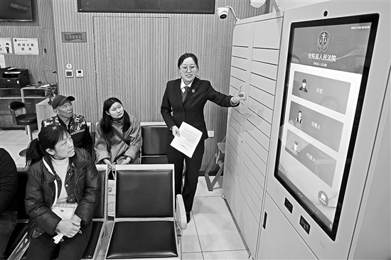 11月4日,河南省安陽縣人民法院訴訟服務(wù)大廳干警向群眾宣講“智能云柜”的功能和使用方法,提供便民訴訟服務(wù)。本報(bào)通訊員 黃憲偉 攝