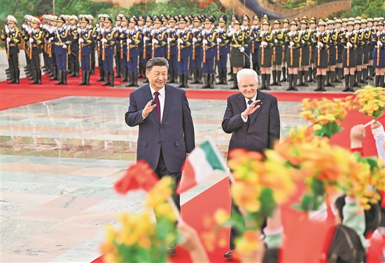 習近平指出,今年是中意建立全面戰(zhàn)略伙伴關系20周年。雙方發(fā)表了加強全面戰(zhàn)略伙伴關系的行動計劃,一致同意秉持歷史悠久的絲路精神,推動雙邊關系進入發(fā)展新階段。當今世界正在經歷百年未有之大變局,中國和意大利作為兩大文明古國,應該弘揚開放包容、兼容并蓄的傳統(tǒng),推動國際社會以對話化解分歧、以合作超越沖突,攜手構建和合共生的美好世界。