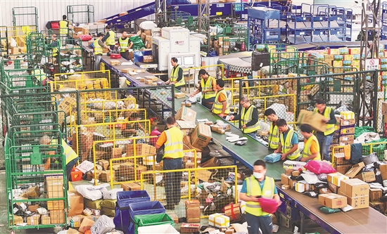 “雙11”高峰來臨,全國各地生產(chǎn)企業(yè)備足貨源,電商、物流等相關(guān)的企業(yè)開足馬力,加班加點,一片繁忙。