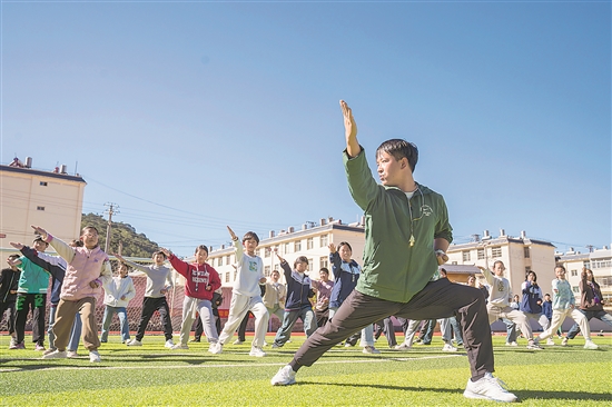 11月12日,在云南省會澤縣第一中學,老師在給學生上體育課。近年來,云南省曲靖市會澤縣持續(xù)促進教育優(yōu)質(zhì)均衡發(fā)展,探索縣域普通中學教育集團化辦學模式,實現(xiàn)各學校資源共享,讓本縣適齡學生在家門口就能上好學校。新華社發(fā)(彭奕凱 攝)
