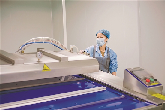 11月12日,在安徽省宿州青網科技園內的宿州市冠祥食品有限公司,工作人員在清理滾動真空包裝機。