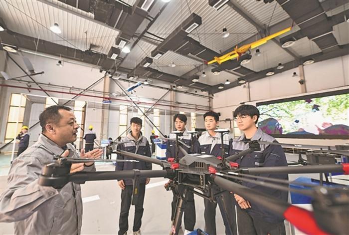 11月12日,天津現(xiàn)代職業(yè)技術(shù)學(xué)院老師在無人機(jī)產(chǎn)教融合實(shí)踐中心指導(dǎo)學(xué)生。