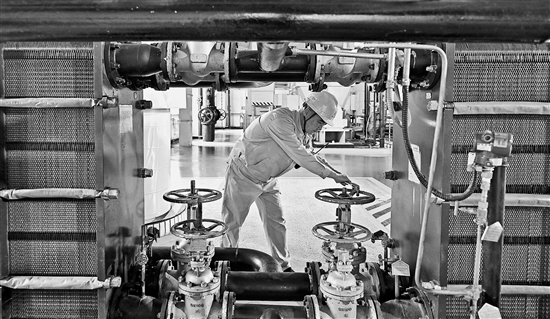 11月12日,國(guó)家能源集團(tuán)寧夏靈武電廠工作人員在供暖設(shè)備機(jī)房對(duì)設(shè)備進(jìn)行調(diào)試。