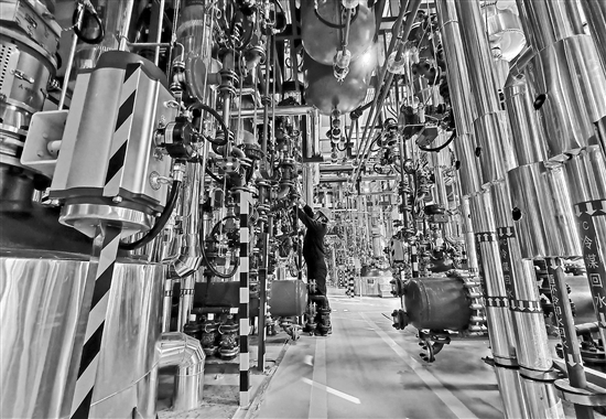 11月11日,在山東日照正濟(jì)藥業(yè)有限公司,合成操作工進(jìn)行管道閥門(mén)檢修。該公司主要生產(chǎn)研發(fā)抗病毒、抗腫瘤、心腦血管以及消化系統(tǒng)類(lèi)原料藥產(chǎn)品,建設(shè)有26條封閉式原料藥生產(chǎn)線(xiàn)、主要面向歐美日韓等國(guó)際醫(yī)藥市場(chǎng)。