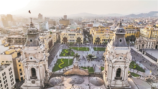 利馬是秘魯?shù)氖锥己妥畲蟪鞘?,位于太平洋海岸和安第斯山脈之間的狹長河谷地帶,是該國的政治、經(jīng)濟、文化中心。利馬終年氣候宜人,有南美“花園城市”的美譽。利馬是著名的歷史文化名城,城區(qū)分為老城、新城兩部分,其中的利馬老城于1988年被列入世界文化遺產(chǎn)名錄,擁有為數(shù)眾多的歷史遺跡。圖為秘魯首都利馬老城的阿馬斯廣場(無人機照片)。