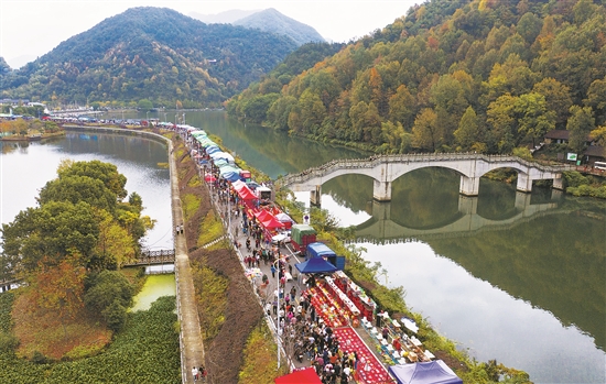 圖為浙江省建德市乾潭鎮(zhèn)“萬樂民間物資交流活動”現(xiàn)場,300多個攤位沿路排開。