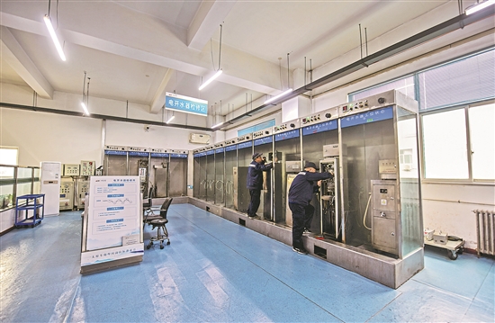 電茶爐是鐵路客車服務(wù)旅客的主要設(shè)施,過去中國鐵路太原局集團有限公司太原車輛段的電茶爐從車上拆卸下來直接放地上進行檢修,既不衛(wèi)生又不安全。如今14個檢修臺位整齊排列,電茶爐全部實現(xiàn)不落地檢修,并實行崗位定置管理,大大提高了檢修效率,也為職工提供了安全保障。圖為11月14日,該段檢修工在檢修電茶爐。張晉彤 攝