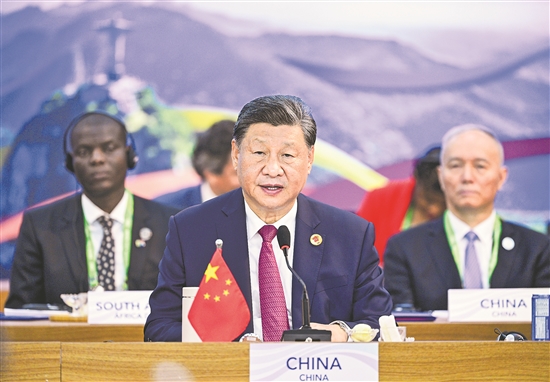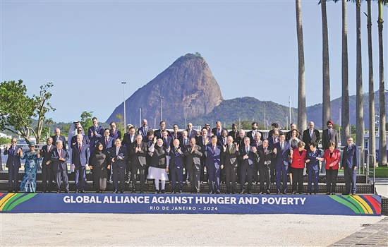 習(xí)近平指出,當(dāng)今世界百年變局加速演進,人類發(fā)展面臨的機遇和挑戰(zhàn)前所未有。作為世界主要大國領(lǐng)導(dǎo)人,我們應(yīng)該不畏浮云遮望眼,秉持命運共同體意識,扛起歷史責(zé)任,展現(xiàn)歷史主動,推動歷史進步。中國主辦二十國集團領(lǐng)導(dǎo)人杭州峰會時,首次將發(fā)展議題放到宏觀經(jīng)濟政策協(xié)調(diào)的中心位置,這次里約熱內(nèi)盧峰會把“構(gòu)建公正的世界和可持續(xù)的星球”作為主題,并決定成立“抗擊饑餓與貧困全球聯(lián)盟”。從杭州到里約熱內(nèi)盧,我們都致力于同一個目標(biāo),即建設(shè)一個共同發(fā)展的公正世界。