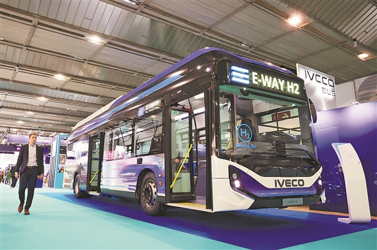 第五屆歐洲氫能周日前在比利時首都布魯塞爾開幕,聚焦氫能產(chǎn)業(yè)創(chuàng)新應用、監(jiān)管政策簡化以及增強歐盟氫能產(chǎn)業(yè)競爭力等議題。圖為近日在比利時布魯塞爾的歐洲氫能周展會現(xiàn)場拍攝的氫能大巴。 新華社記者 趙丁喆 攝