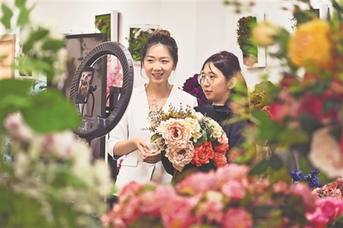 11月20日,浙江義烏工商職業(yè)技術(shù)學(xué)院外語外貿(mào)學(xué)院多語種跨境直播中心,直播創(chuàng)業(yè)導(dǎo)師正在義烏市花類協(xié)會與學(xué)院共創(chuàng)的仿真花直播空間指導(dǎo)學(xué)生進(jìn)行多語種跨境直播。與此同時,在飾品、工藝品等直播空間,創(chuàng)業(yè)導(dǎo)師們也正帶領(lǐng)學(xué)生進(jìn)行多語種跨境直播實(shí)踐。