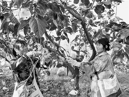 浙江省江山市峽口鎮(zhèn)探索建立“柿柿如意”共富工坊,吸收周邊剩余勞動力約50名。該鎮(zhèn)共有350畝太秋甜柿,預計今年甜柿產(chǎn)量將超過50萬斤。從開始采摘到采摘結束,工人需干3個月左右。圖為共富工坊工人在采摘甜柿。