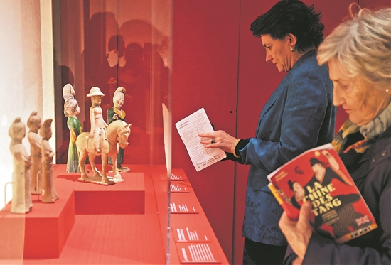 “中國·唐——一個多元開放的朝代(7至10世紀(jì))”展覽日前在法國吉美國立亞洲藝術(shù)博物館開幕。本次展覽由中國國家文物局與法國文化部指導(dǎo),展出來自中國10個省區(qū)市32家文博機(jī)構(gòu)的200余件(套)精美文物。圖為近日,在位于法國巴黎的吉美國立亞洲藝術(shù)博物館,人們參觀“中國·唐——一個多元開放的朝代(7至10世紀(jì))”展覽。