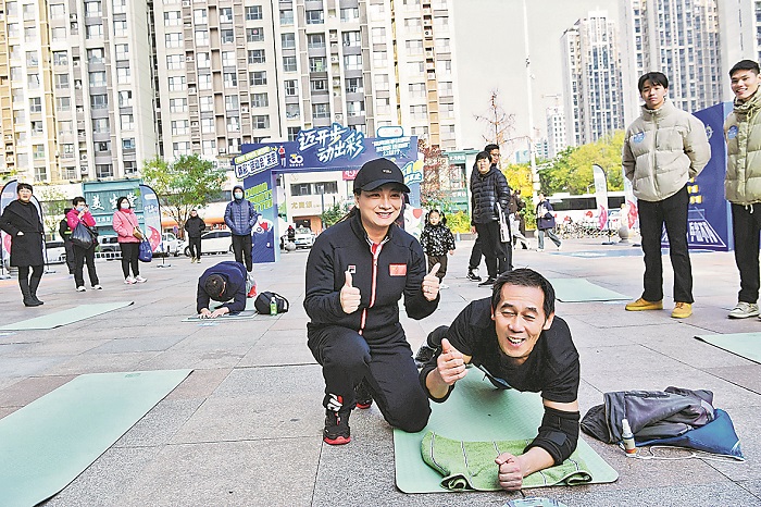 近日,由國家體育總局體育彩票管理中心、中國體育報(bào)業(yè)總社有限公司、河北省體育局主辦的“邁開步 動(dòng)出彩”“體育賽事進(jìn)景區(qū)、進(jìn)街區(qū)、進(jìn)商圈”公益行活動(dòng)在河北石家莊市裕華區(qū)萬達(dá)廣場步行街舉行。圖為自由式滑雪空中技巧世界冠軍李妮娜與健身愛好者在街頭上演體能大挑戰(zhàn)。本報(bào)通訊員 體軒 攝