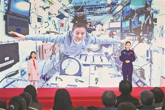 11月28日,航天員王亞平與女兒在開幕式上共同演繹“摘星星的媽媽”。