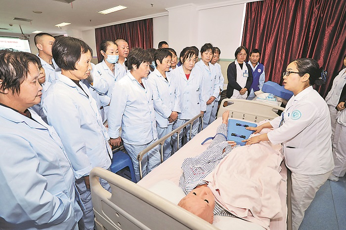 “無陪護”護工,也即提供免陪照護服務(wù)的護工。此次培訓(xùn)由經(jīng)驗豐富的護士長擔(dān)任培訓(xùn)導(dǎo)師,從理論到實踐系統(tǒng)提升在院護工的專業(yè)素養(yǎng)和實操能力。本報通訊員 單明銘 攝