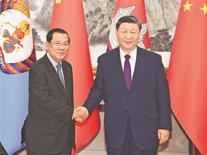 習(xí)近平指出,當(dāng)前,國(guó)際形勢(shì)變亂交織,全球性挑戰(zhàn)層出不窮,考驗(yàn)著各國(guó)的應(yīng)對(duì)和選擇。中柬兩國(guó)都致力于做世界的和平力量、發(fā)展力量、進(jìn)步力量。中方將繼續(xù)支持柬埔寨在國(guó)際和地區(qū)事務(wù)中發(fā)揮更大作用,壯大“全球南方”力量,支持東盟堅(jiān)持戰(zhàn)略自主,維護(hù)中心地位,堅(jiān)決反對(duì)外部勢(shì)力將冷戰(zhàn)思維引入本地區(qū),堅(jiān)定不移推動(dòng)?xùn)|盟一體化和共同體建設(shè)。中方愿同柬方堅(jiān)定道不改、志不變的決心,增強(qiáng)底線思維,加強(qiáng)協(xié)作和配合,共同應(yīng)對(duì)各種風(fēng)險(xiǎn)。
