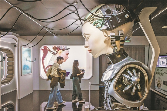 12月4日,北京,EDCC藝云數(shù)字藝術(shù)中心(王府井),觀眾在觀看《靈境·未來靈感世界》展覽。據(jù)了解,該展覽通過AIGC、8K超高清、交互傳感、VR、裸眼3D等數(shù)字技術(shù),融合中國傳統(tǒng)文化和西方優(yōu)秀文化IP,打造沉浸式、參與式的數(shù)字藝術(shù)館,為公眾提供豐富的數(shù)字文化大餐。本報記者 蔚可任 攝