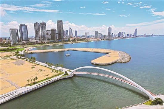 從斯里蘭卡首都科倫坡高空俯瞰,一道3.7公里長(zhǎng)的半圓形人工堤壩如同手臂,環(huán)抱著科倫坡港口城的海岸,這道防波堤以里仿佛一座散布著珊瑚和魚群的“海底花園”。防波堤采用經(jīng)中國(guó)技術(shù)改良后獨(dú)特的“扭王字塊”設(shè)計(jì),為珊瑚提供了完美的附著表面,使珊瑚在適宜的水深和光照條件下生長(zhǎng)。圖為近日拍攝的斯里蘭卡科倫坡港口城景色。新華社發(fā)