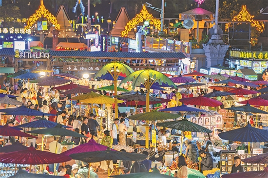 夜幕降臨,告莊西雙景星光夜市流光溢彩、游人如織。該夜市近年來通過布局綜合性旅游業(yè)態(tài)、推出精品夜間商業(yè)產(chǎn)品、打造特色文化體驗(yàn)活動(dòng)等舉措,為西雙版納文旅發(fā)展注入新動(dòng)能。