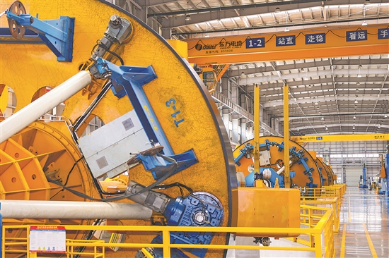 圖為11月13日拍攝的寧波東方電纜股份有限公司生產(chǎn)車間。新華社記者 江漢 攝