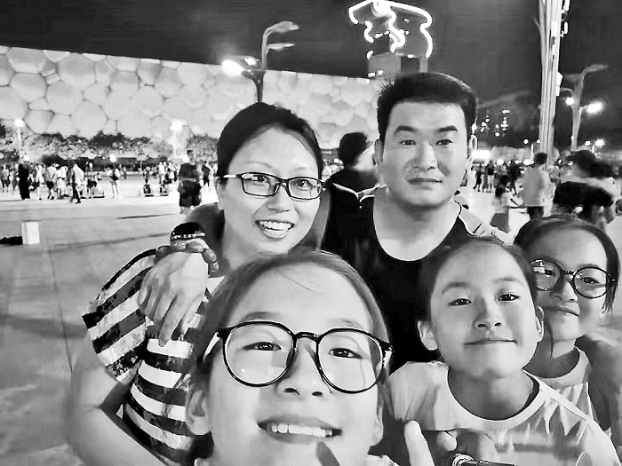 一家五口到北京旅游時的自拍。