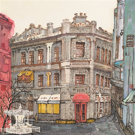 老街新夢(國畫) 黑龍江 賈智慧