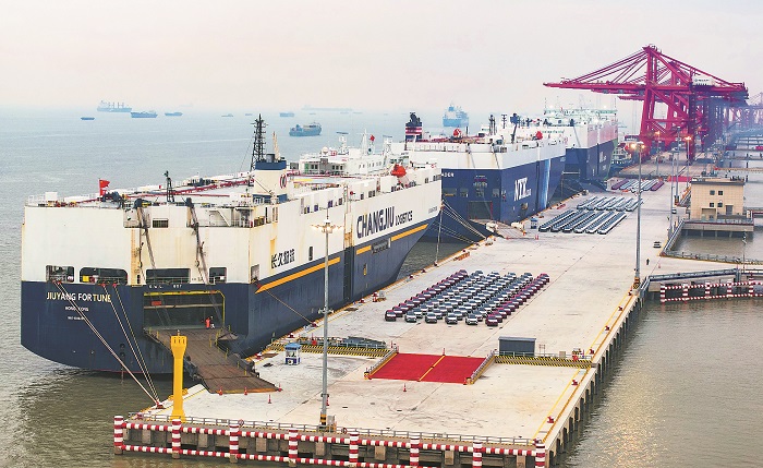 12月12日,江蘇省蘇州港太倉港區(qū),海通(太倉)汽車碼頭正式開港,標(biāo)志著長江干線最大的汽車滾裝碼頭正式投入生產(chǎn)運(yùn)營。