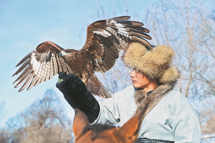 吉林省非遺鷹獵表演。本報記者 吳凡 攝