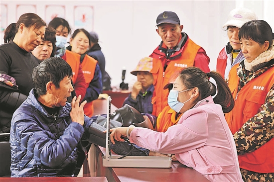 12月11日,江蘇省連云港市連云區(qū)海州灣街道總工會聯(lián)合連云區(qū)婦幼保健所,在營山社區(qū)開展“暖心義診 守護健康”活動。醫(yī)務人員為環(huán)衛(wèi)工人量血壓、測血糖,進行健康檢查,指導正確用藥,普及冬季養(yǎng)生知識,讓他們在家門口享受到貼心、周到、便利的診療服務。本報通訊員 朱華南 李敏藝 攝