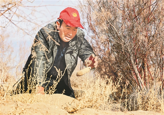 入冬后,望著一大片平坦的沙地,麥麥提說:“沙產(chǎn)業(yè)不僅能讓我賺到錢,還可以為家鄉(xiāng)的生態(tài)改善出一份力?!?/p>