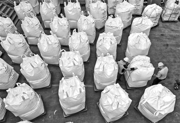 12月14日,在江西省萍鄉(xiāng)市湘東區(qū)拓源實業(yè)有限公司,工人正在對電池級碳酸鋰進行打包。碳酸鋰是制備鋰電池的重要原料。
