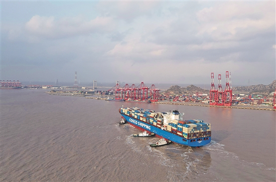 當(dāng)日,中遠海運旗下“新上?!陛喗?jīng)過23天的航行,從秘魯錢凱港抵達上海洋山港,這是自秘魯錢凱港開港后首個“錢凱—上?!闭胶酱危瑯?biāo)志著從錢凱港到上海港的海運航次首次雙向貫通。