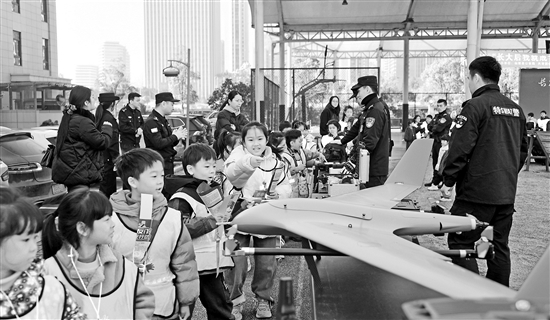 12月15日,浙江省臺(tái)州市仙居縣公安局與華東師范大學(xué)附屬仙居學(xué)校一同組織開(kāi)展了“警營(yíng)開(kāi)放日 我是小警察”活動(dòng),把課堂從教室搬到警營(yíng),讓學(xué)生們近距離體驗(yàn)警用裝備、警務(wù)工作和多彩的警營(yíng)文化。圖為小學(xué)生在仙居縣公安局參觀警用裝備。
