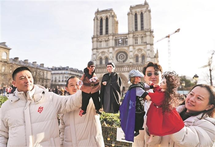 中法美麗鄉(xiāng)村行活動(dòng)近日拉開(kāi)帷幕,旨在促進(jìn)文明互鑒和文化交融。活動(dòng)開(kāi)幕前夕,中國(guó)福建展演團(tuán)在重新開(kāi)放的巴黎圣母院前舉行快閃活動(dòng),在熙攘的游客群中演繹布袋木偶戲《巴黎圣母院》。圖為近日,在法國(guó)巴黎圣母院前,來(lái)自中國(guó)福建展演團(tuán)的演員表演布袋木偶戲《巴黎圣母院》。新華社記者 高靜 攝