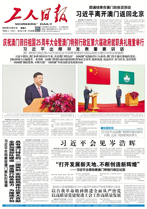 工人日?qǐng)?bào) 2024年12月21日 星期一