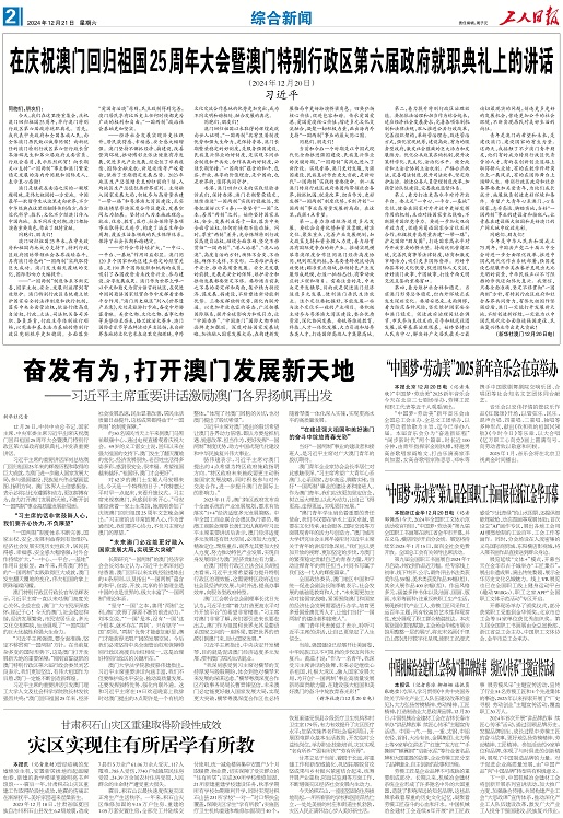 工人日?qǐng)?bào) 2024年12月21日 星期一