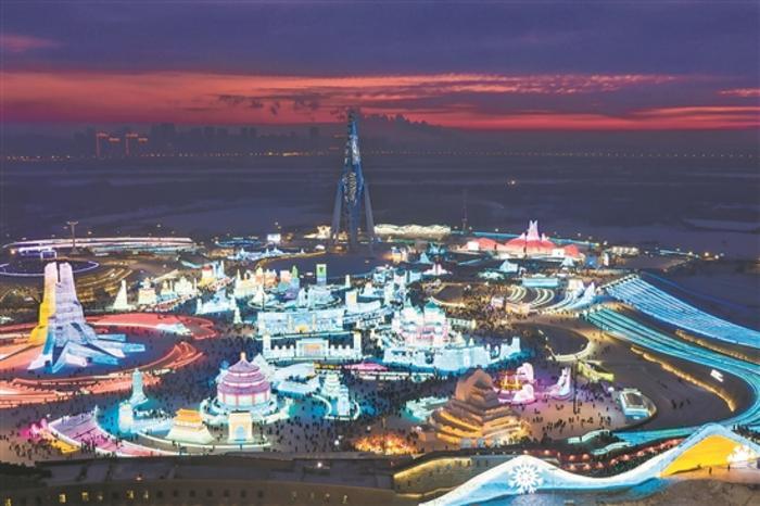 12月21日傍晚,第26屆哈爾濱冰雪大世界燈光璀璨。歷經(jīng)一個月左右的施工建設(shè),這座世界上最大的冰雪主題樂園于當(dāng)日正式開門迎客。