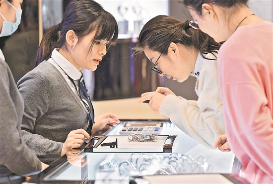 12月21日,顧客在海南省??谑腥赵聫V場免稅店選購手表。據(jù)海口海關(guān)統(tǒng)計,今年以來,海口海關(guān)“即購即提”提貨方式免稅購物總金額超30億元,150余萬人次選擇以“即購即提”方式提貨。新華社記者 郭程 攝