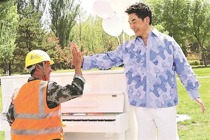 4月18日,央視總臺在中關(guān)村軟件園內(nèi)的一處草坪上錄制2024年“中國夢·勞動美”——2024“五一”國際勞動節(jié)“心連心”特別節(jié)目,易群林應(yīng)邀與歌手任賢齊搭檔演出。本報記者 吳凡 攝
