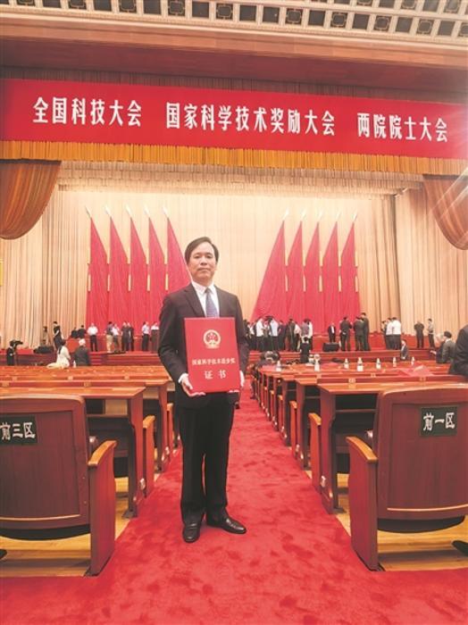 6月24日,全國總工會提名的“新一代運載火箭高效能氫氧發(fā)動機(jī)焊接制造技術(shù)”項目榮獲國家科學(xué)技術(shù)進(jìn)步二等獎。圖為項目主要完成人高鳳林在頒獎現(xiàn)場。受訪者供圖