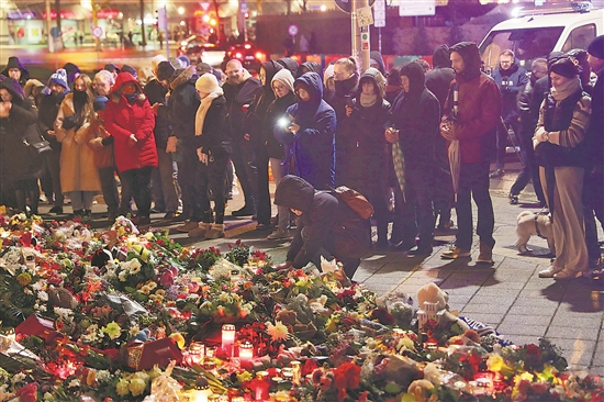 當?shù)貢r間12月21日,人們在德國馬格德堡悼念圣誕市場遭襲擊事件遇難者。