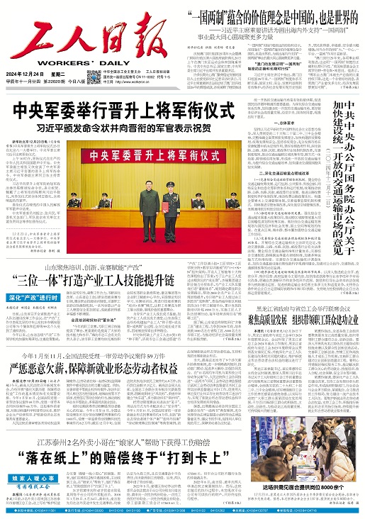 工人日?qǐng)?bào) 2024年12月24日 星期一