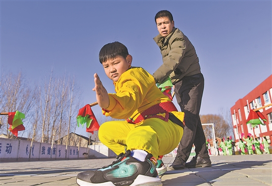 12月22日,在河北滄州南皮縣馮家口鎮(zhèn)車官屯小學(xué),滄州落子藝人在指導(dǎo)學(xué)生練習(xí)滄州落子。滄州市深入推進(jìn)大運河文化帶建設(shè),包括滄州落子在內(nèi)的一批國家級非物質(zhì)文化遺產(chǎn)在保護(hù)、傳承過程中綻放新的風(fēng)采。新華社記者 牟宇 攝
