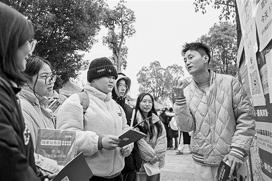 12月23日,在長沙師范學(xué)院舉辦的2025屆畢業(yè)生冬季招聘會上,招聘人員(右一)向求職學(xué)生介紹崗位信息。當(dāng)日,長沙師范學(xué)院舉辦“暖冬送崗,職引未來”2025屆畢業(yè)生冬季招聘會。250余家參會主體推出1200多個工作崗位,涉及教育、產(chǎn)品制造、媒體等多個行業(yè)。