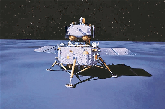 這是2024年6月2日在北京航天飛行控制中心屏幕上拍攝的嫦娥六號著陸器和上升器組合體著陸月背的模擬動畫畫面。