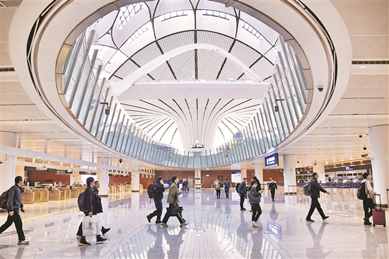 12月27日,外國游客在北京大興機場邊檢大廳準備入境。