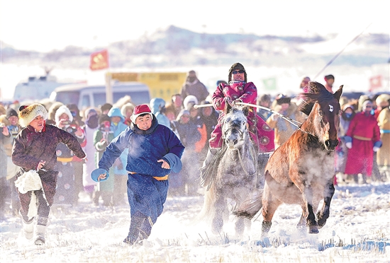 12月28日,參賽選手在馴馬比賽中。當(dāng)日,2024錫林郭勒冬季蒙古馬超級聯(lián)賽總決賽在內(nèi)蒙古自治區(qū)錫林郭勒盟錫林浩特市白音錫勒牧場開幕?;顒?dòng)為期2天,除設(shè)置賽馬、馴馬、跑馬射箭等比賽項(xiàng)目外,還舉辦豐富多彩的文旅商活動(dòng),吸引眾多游客前來觀賞和參與。 新華社發(fā) (王正 攝)