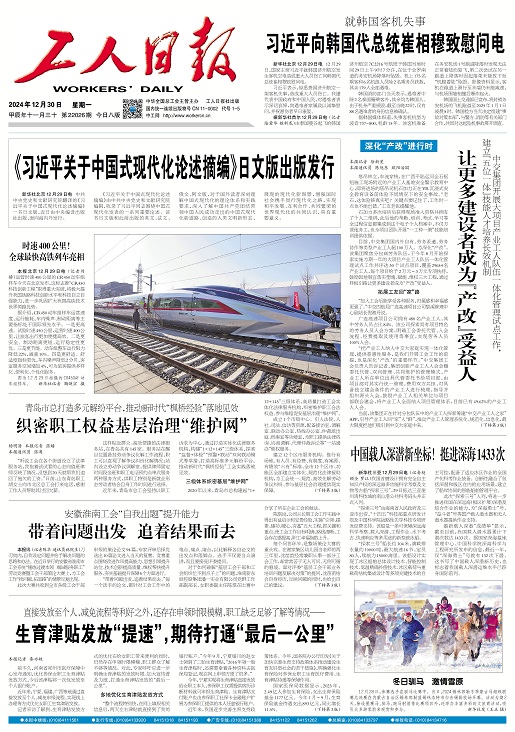 工人日?qǐng)?bào) 2024年12月30日 星期一