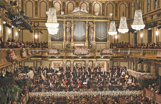 當(dāng)?shù)貢r(shí)間1月1日,維也納愛樂(lè)樂(lè)團(tuán)在奧地利維也納金色大廳新年音樂(lè)會(huì)上演奏。當(dāng)日,維也納愛樂(lè)樂(lè)團(tuán)在奧地利維也納金色大廳舉行2025年新年音樂(lè)會(huì)。新華社發(fā)